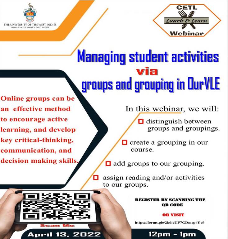 CETL's Lunch and Learn Webinar "Managing Students activities via grouping in OurVLE"