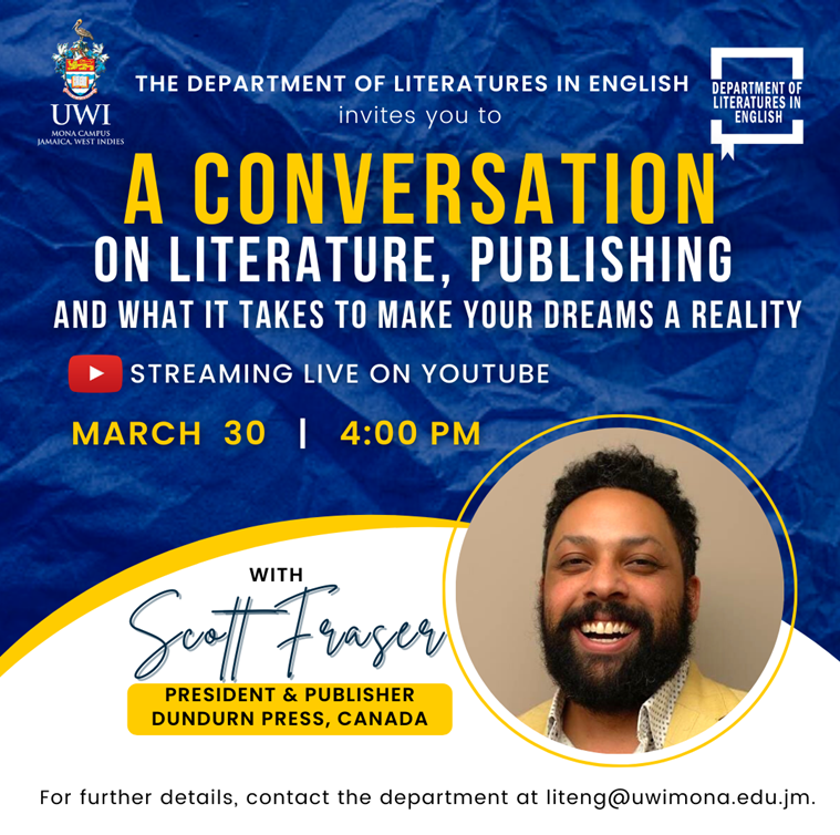 The event is titled “ A Conversation on Literature, Publishing and what it takes to make your dreams a reality" with Mr Scott Fraser.